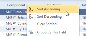 Data grids can also be sorted by right-clicking on the columnn header and choosing the preferred sort order.