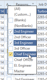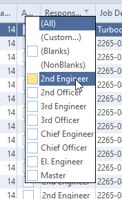 After clicking the filter symbol a selection list appears that allows you to define what data are to be shown in the grid.