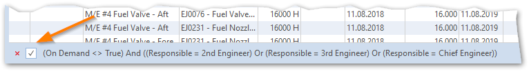 - Via the checkbox the active filter can be temporarily disabled and enabled again.