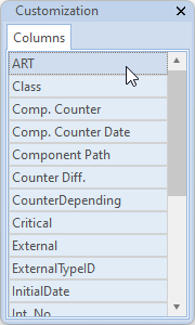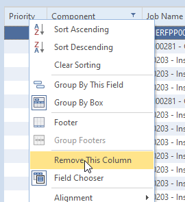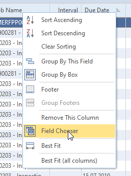 If additional columns exist, the Field Chooser can be used for adding additional columns to the grid. For accessing the Field Chooser, right-click on a column header and choose Field Chooser from the menu.